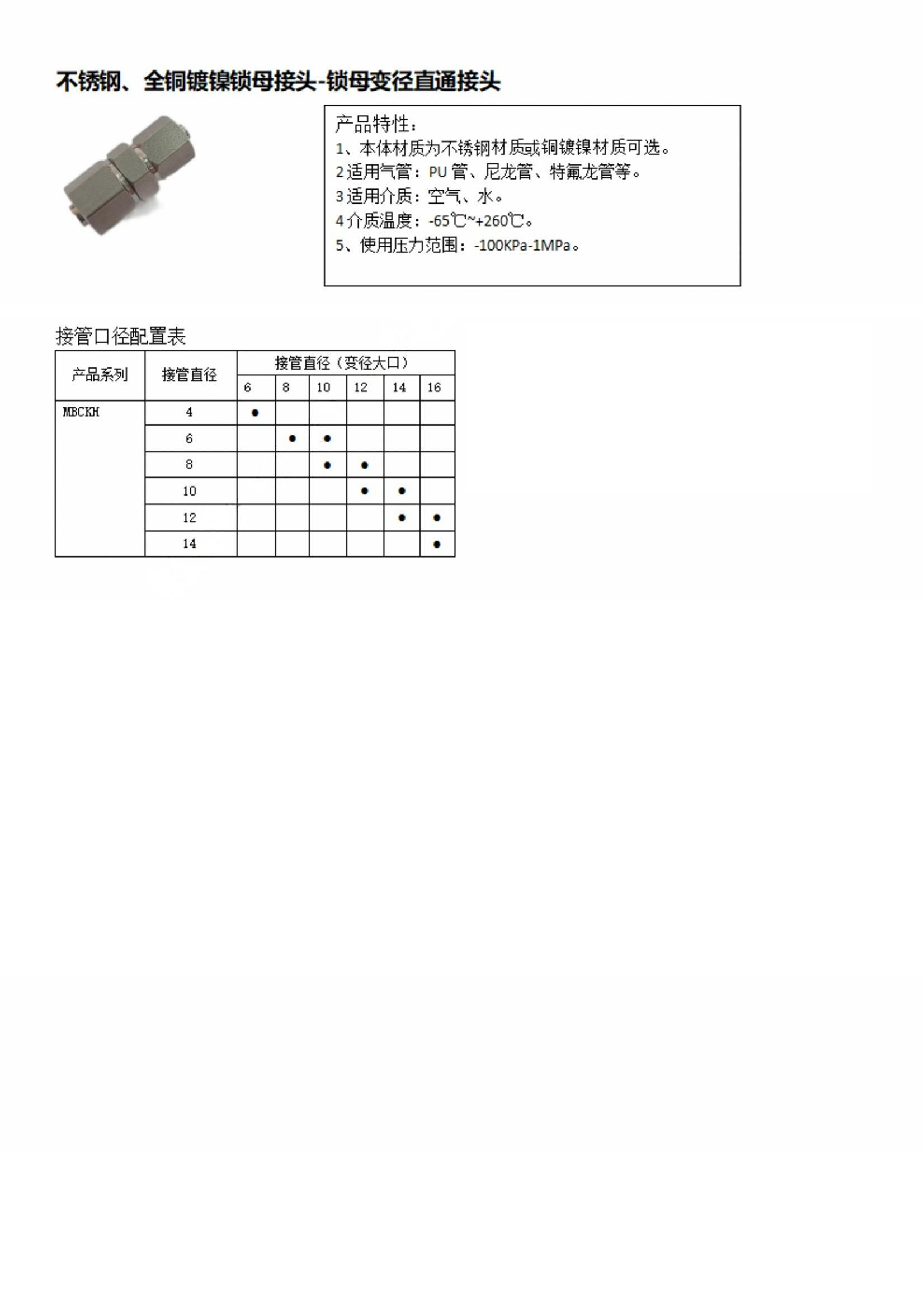 全部 不锈钢、全铜镀镍快插接头 不锈钢、全铜镀镍锁母接头 不锈钢、全铜镀镍卡套接头