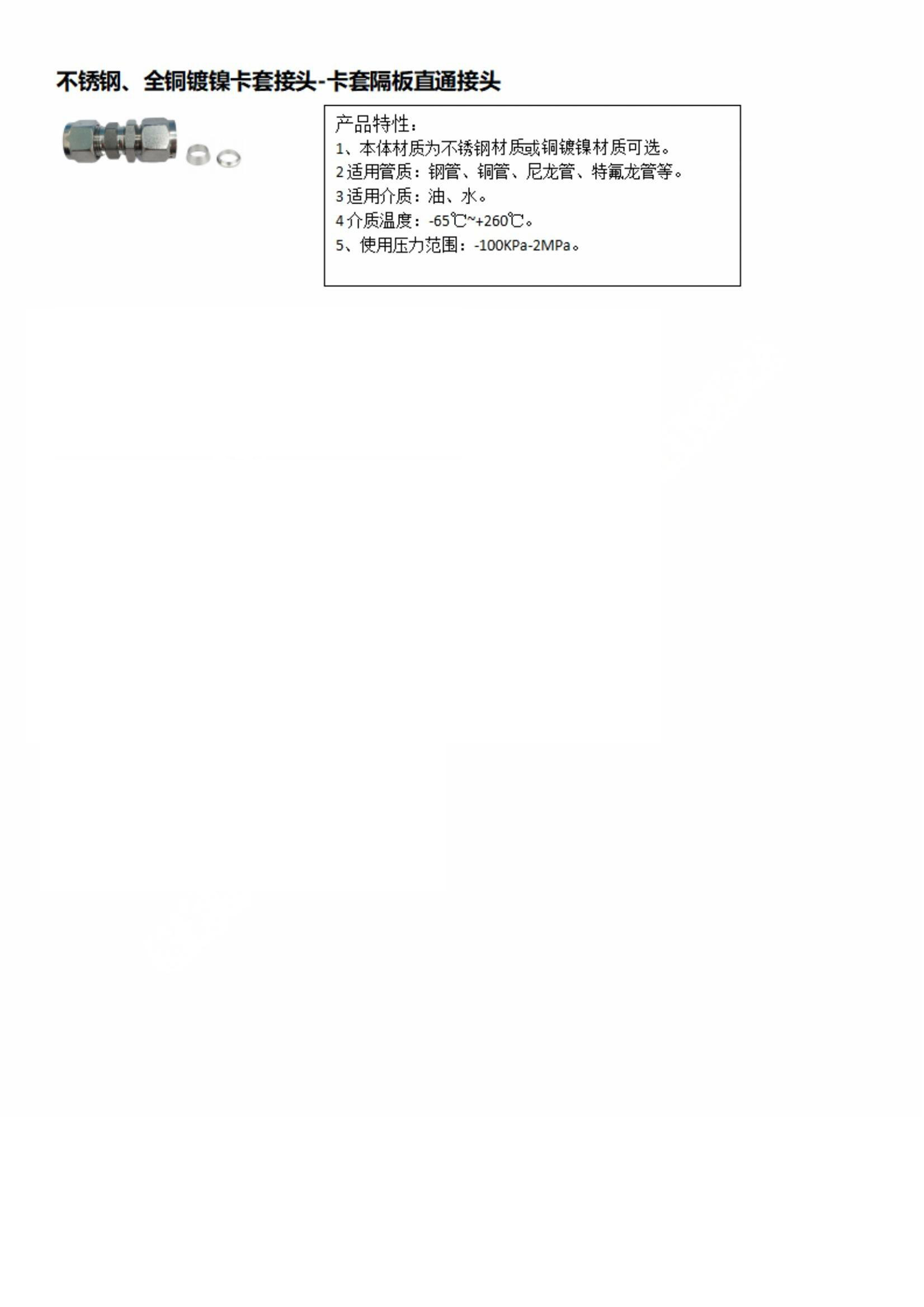 卡套隔板直通接头