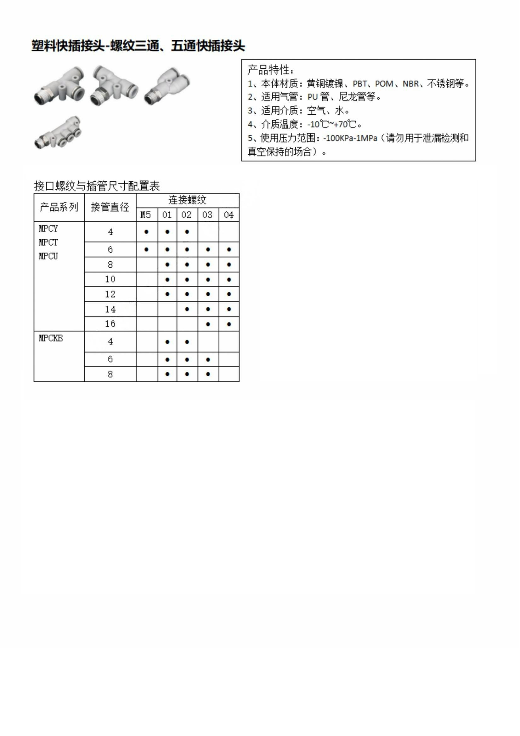 螺纹三通、五通快插接头