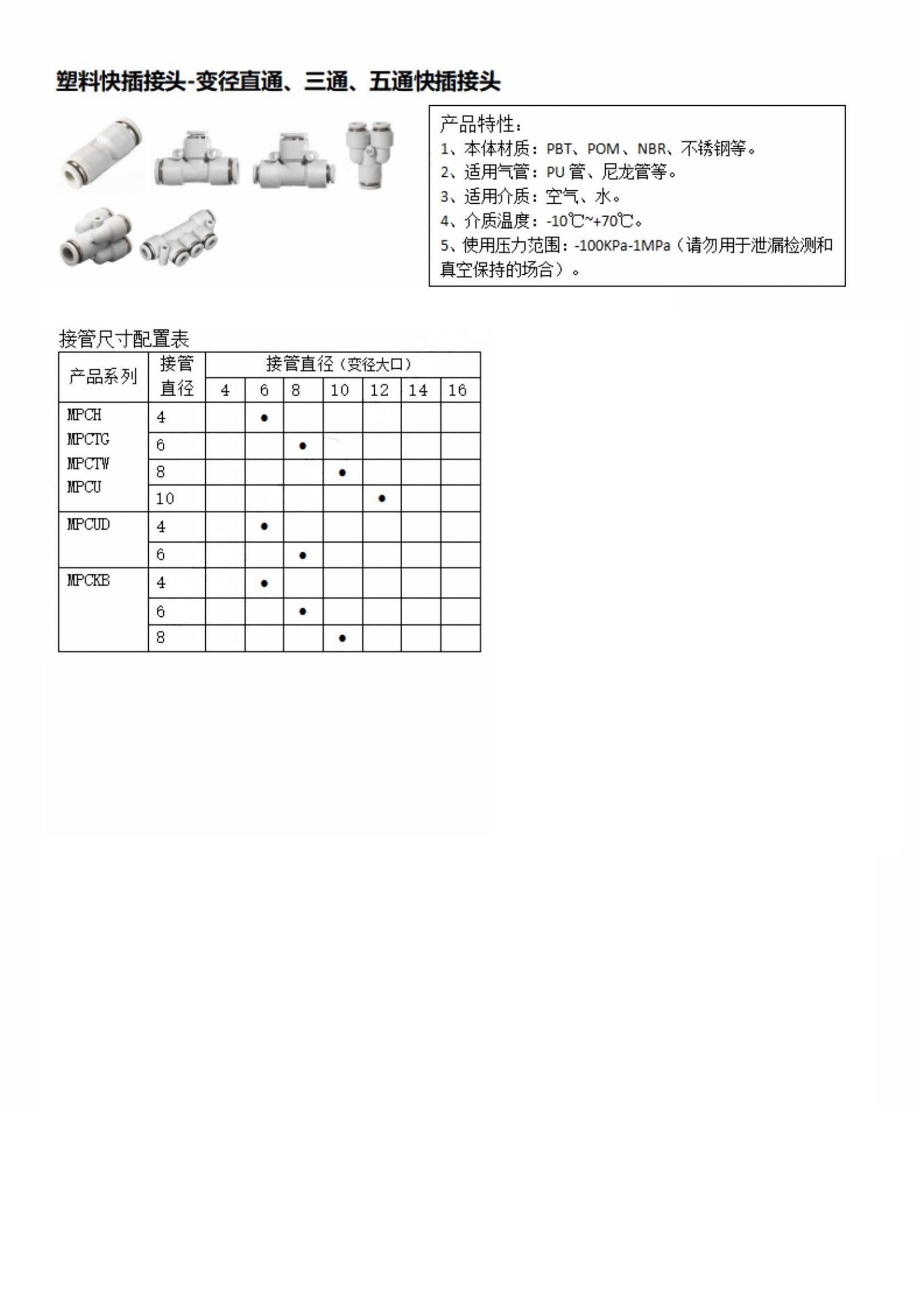 变径直通、三通、五通快插接头