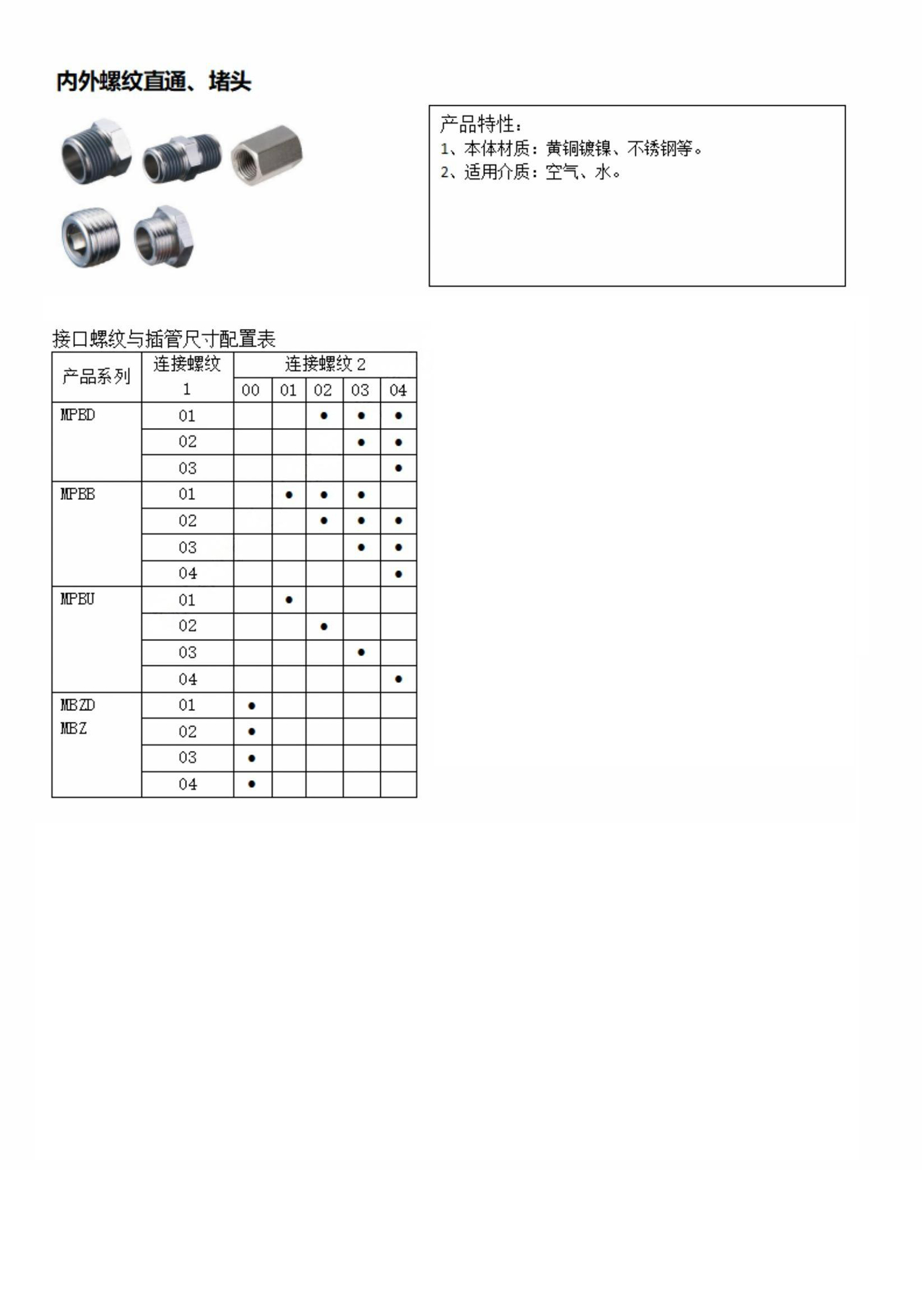 内外螺纹直通、堵头